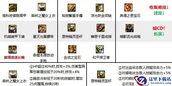 防具推荐:高科技肩甲+森林魔女上衣+机械下装+星灭腰带+赛博音速长靴