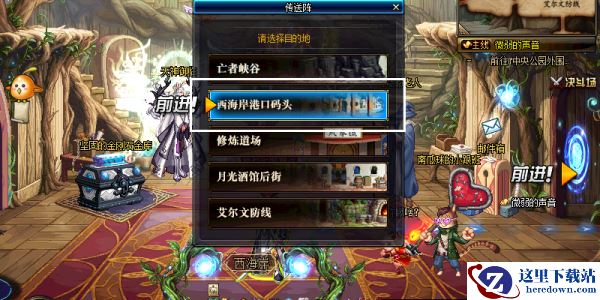 1、首先进入游戏来到赛丽亚房间以后,向左移动进入传送门,选择“西海岸港口码头”。