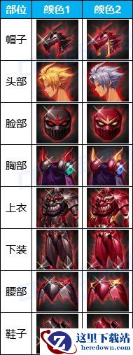 第一套天空有2款颜色,套装部位包含了帽子、头部、脸部、胸部、上衣、下装、腰部以及鞋子。