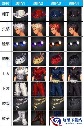套装部位包含了帽子、头部、脸部、胸部、上衣、下装、腰部以及鞋子。