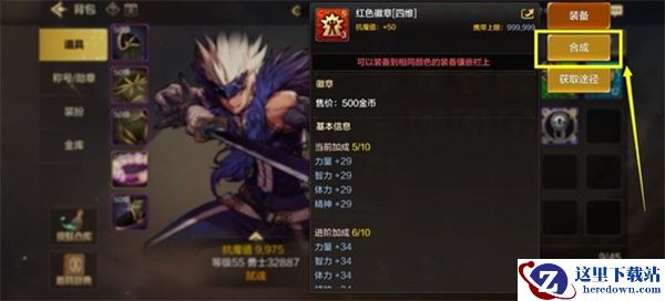 2、接着跳转至合成界面可以看到装备部位的徽章孔。