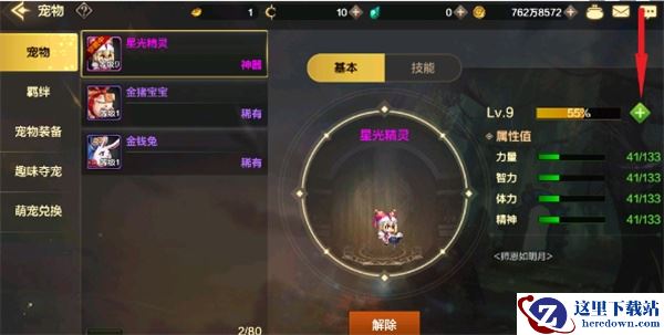 2、接着在宠物栏中找到宠物点击右侧的绿色加号按钮。
