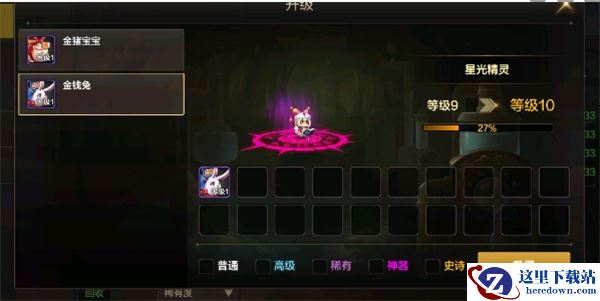 3、最后选择升级材料点击“升级”按钮即可强化宠物的等级。