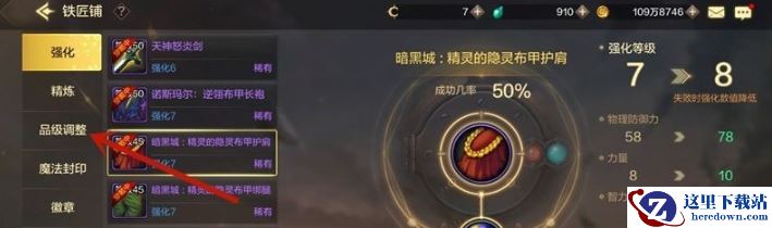 5、点击右下角的【品级调整】按钮,就可以调整品级成功。