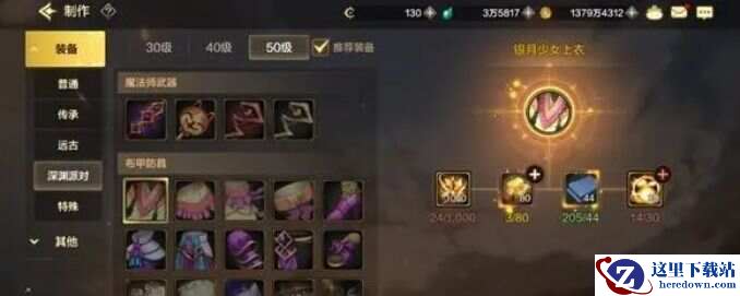 4、获得的深渊精粹是非常重要的史诗装备制作材料,1000个相同部位的深渊精粹可制作指定部位的史诗装备。点开主面板上的制作-装备,选择深渊派对即可看到各种装备制作所需要的材料。