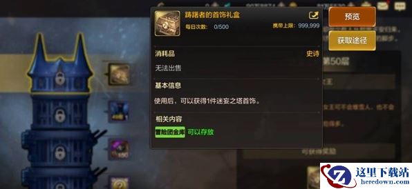 在迷妄之塔中可以获得非常丰富的奖励,包括金币、史诗装备、炉岩碳、精炼石、白金徽章、卡片等,攀登的层数越高获得的奖励也就越多。其中最重要的奖励是白金徽章自选礼盒,以及通关40、50层后分别可以的获得一个【踌躇者】50级史诗首饰礼盒。