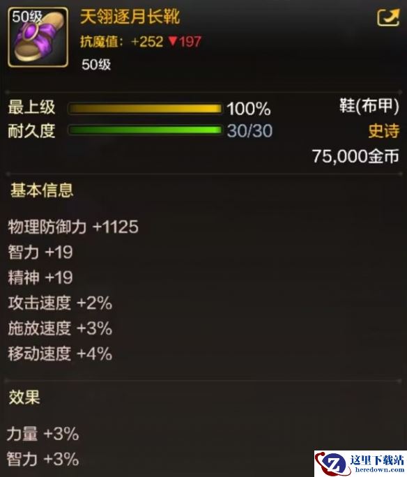 天翎逐月长靴是《地下城与勇士:起源》中的50级鞋位置的史诗布甲,能够增加力量和智力属性,可以通过深渊掉落和近期开启的团队模式BOSS获取,那么接下来就让我们一起了解一下天翎逐月长靴具体有着什么样的属性和效果吧。