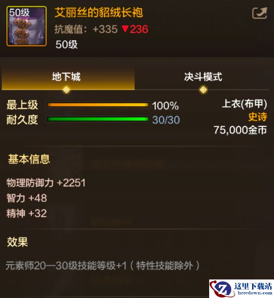 艾丽丝的貂绒长袍是《地下城与勇士:起源》中的50级上衣位置的史诗布甲散件,能够强化元素师的基础技能,可以通过深渊掉落和近期开启的团队模式BOSS获取,那么接下来就让我们一起了解一下艾丽丝的貂绒长袍具体有着什么样的属性和效果吧。