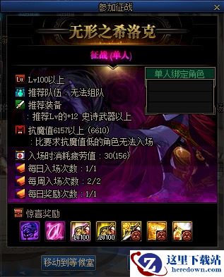 在希洛克征战模式等待室中的NPC联盟军士兵处,使用希洛克征战模式开始菜单,可以进入地下城。