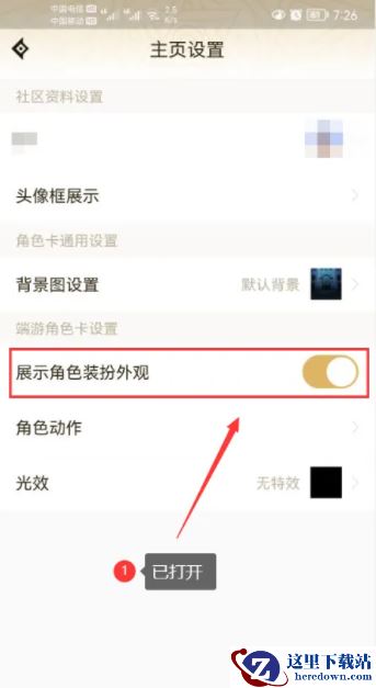 把展示角色装扮外观功能开关点击打开(图片中圈红的部分)