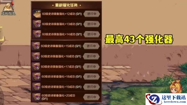 完成累积强化任务,所有任务都完成可以获得43个强化器和1张10强化券。