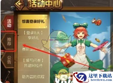 2、在活动中心中找到左侧的推荐。