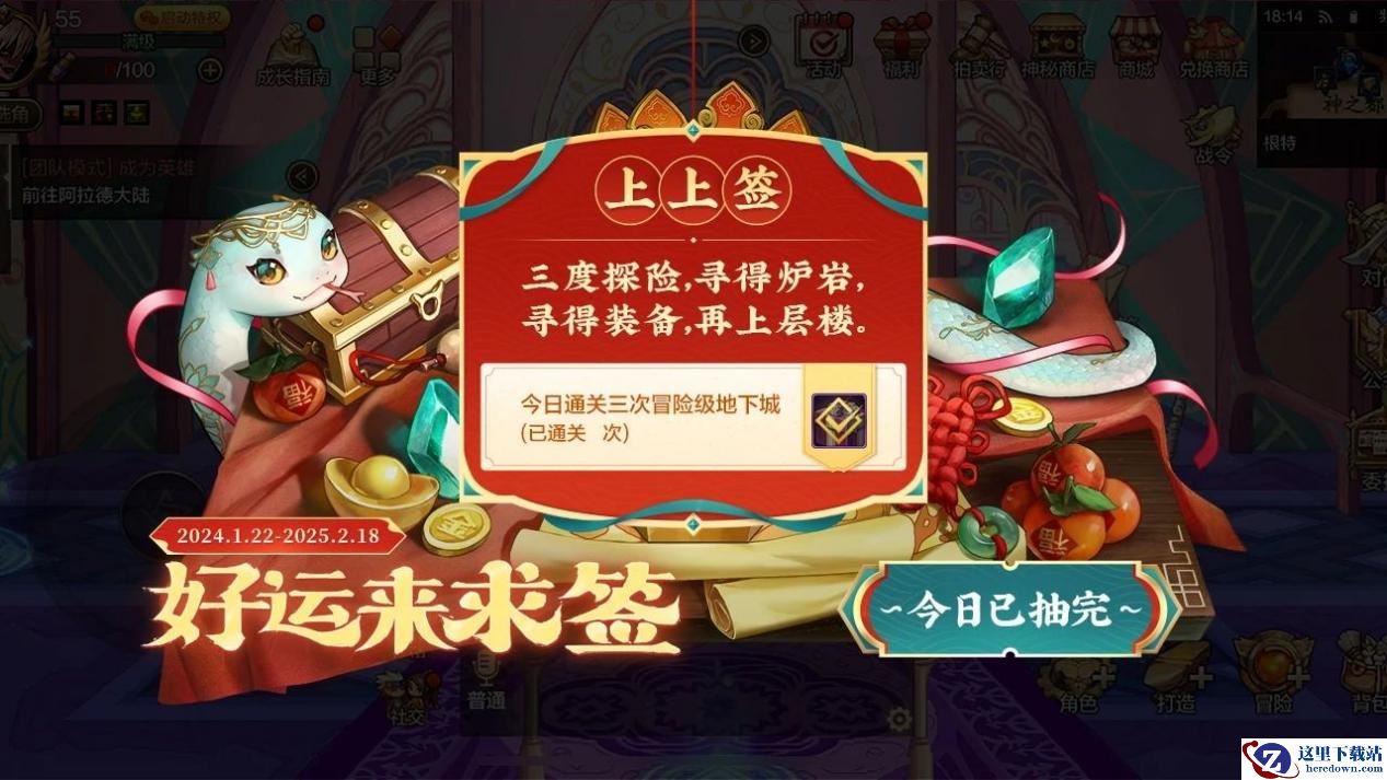 活动内容:活动期间,每日可以抽签获得签文,完成签文中的任务获得奖励。