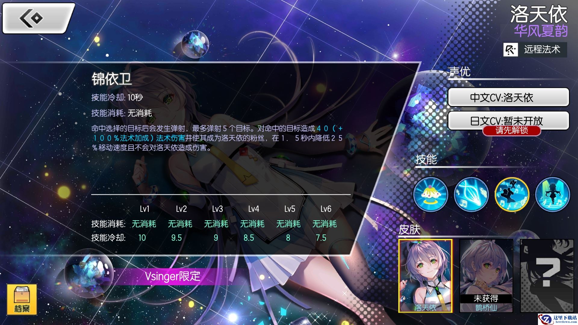 1技能:洛水天依。开启后强化普攻,每次普攻会额外附带法术伤害,伤害量差不多是普攻的3~4倍左右(前期,凭自己感觉),然后1级冷却是16秒。