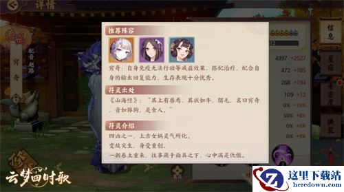在《云梦四时歌》中,穷奇本身有输出,有吸血,有速度,有抗控,所以是非常理想的输出。在搭配其他符灵时,比较适合“一波流”战术,主流搭配可以由穷奇、玉圭、英招、洛神和应龙组合。玉圭和英招都有“增加我方行动条”的能力,双拉加持下,更易抢先出手。