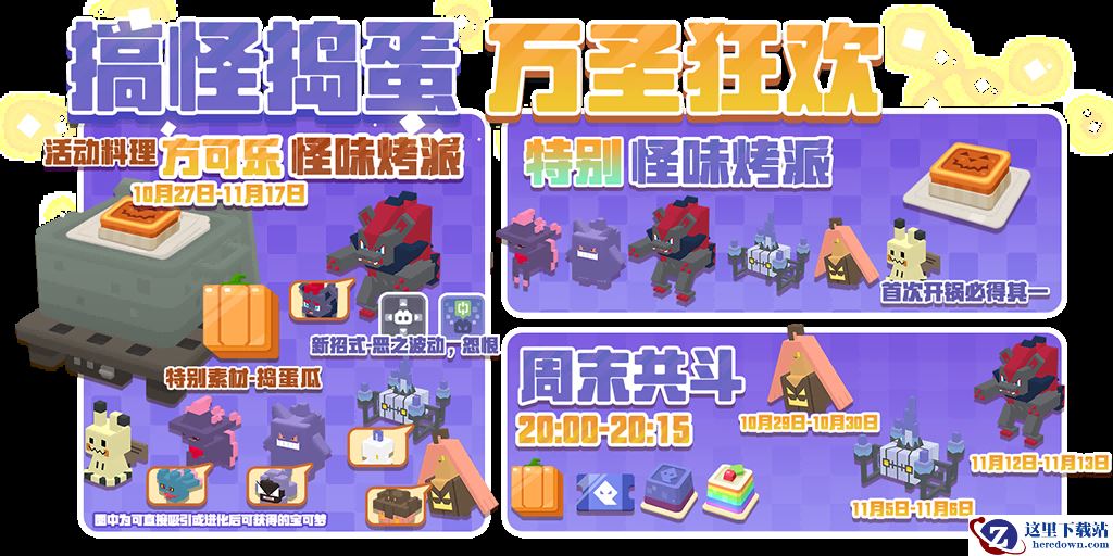 随着万圣夜的到来,惊险畅快的万圣节主题集结共斗也是不容错过,挑战boss宝可梦南瓜怪人、水晶灯火灵、索罗亚克还能获得包括松糕、兑换券、食材在内的丰厚奖励。此外还有一个好消息:方石槽属性重置道具“完全转换之石”开放商城获取啦!加上组队玩法中的开箱掉落,将大大助力探险家培养心仪的宝可梦~
