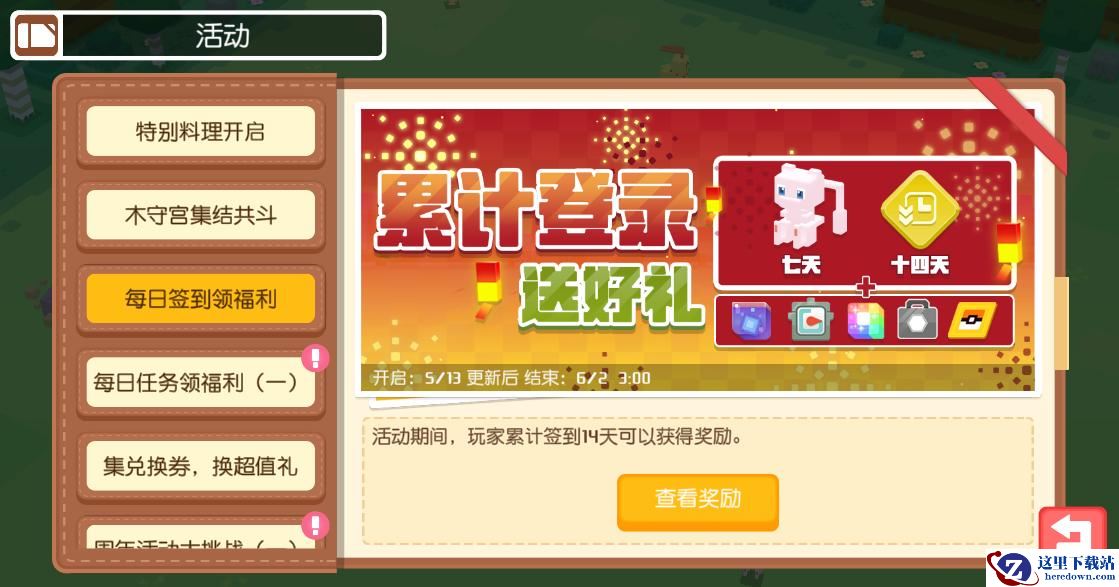 面对探险家们的真挚祝福,《宝可梦大探险》福利就位,就等和大伙儿共享欢乐!只需登录游戏,积极签到就有超绝丰厚的惊喜好物!累计签到7天,即可喜提幻之宝可梦-梦幻,累计签到14天,招式石-快快石收入囊中!