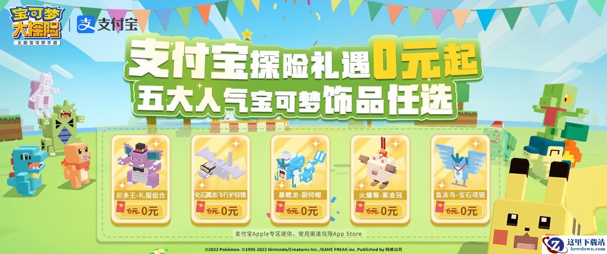 为回馈探险家们长达一年的相伴同行,官方特别联合支付宝发起0元购红包活动!iOS小伙伴游戏内点击banner,或在支付宝搜索“宝可梦大探险果粉礼”点击活动banner,均可进入活动页面。绑定支付宝账号后即可获得随机App Store红包,用于游戏道具购买抵扣,还能任选人气宝可梦精美饰品!