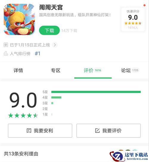 Taptap、好游快爆、B站用户均给出《闹闹天宫》压倒性的五星好评,并从画风、玩法、创意、角色、趣味性等多个层面对游戏进行点评。