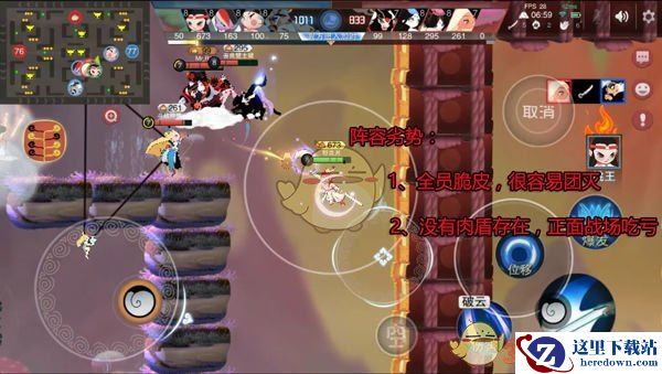 1、输出型英雄的生存能力都不佳,在交战时切忌挨得过紧,尽可能降低被群控技影响的成员数,否则很可能因为中一个群控技出现团灭的情况!