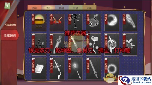 3、鱼骨刃——与火属性法宝相关的法器,由于部分英雄在施法过程中很容易受速度影响实际伤害量(例如小白龙、白骨精),依靠“鱼骨刃”的提速效果可以变相提升这类英雄的技能伤害。