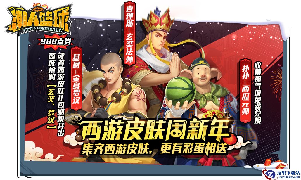 新春将至,共贺佳节,潮篮师徒闹春节,西行之旅齐献礼!《潮人篮球》西游主题皮肤重磅上线,超多惊喜陪你过年!烈火球员们为了锻炼自己的球技,决定勇敢西行,一探西部沙丘区之谜!