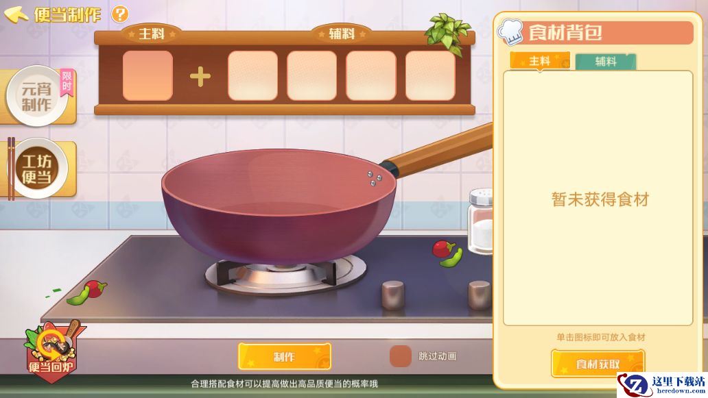 4、制作便当时还可额外放入至多4种辅料,放入辅料可提升制作高星便当的概率,但不会超出主料决定的星级范围;