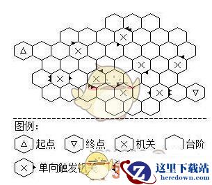 注:单向触发机关的触发方向即单箭头指向。双向触发机关的触发法则为:行动奇数次则触发方向为单箭头指向,行动偶数次则触发方向为双箭头指向。