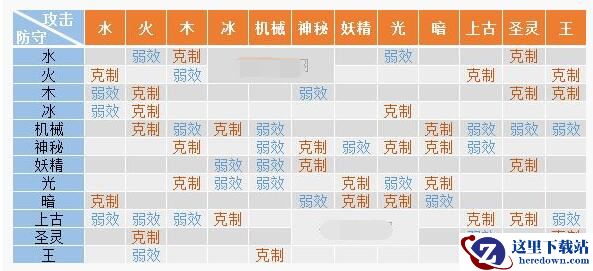 从上方找寻到你携带精灵的系别,在对应左侧进攻的精灵系别,若是克制则伤害加倍,为克制效果。若是弱效则被进攻的精灵对你的精灵系别是抵抗的,伤害会相应降低。