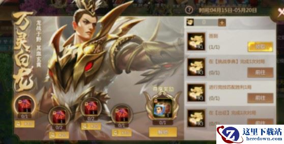 手握神兵魔龙戟袁术穿戴新换装万灵白龙来了。完成指定活动搜 集白玉龙,即可兑换龙战于野礼包,获得威名等丰厚道具。购买升级密钥,更可解锁万 恶白龙换装及专属称号。