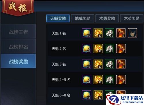 前4组,组名为“天魁,地威,水勇,木英”,每8个军团一组,共32个军团,剩余的军团根据排名进行阶段划分。其中天魁1名不仅能获得坐骑:帝火赤兔还能获得台牌饰:独孤求败。