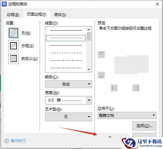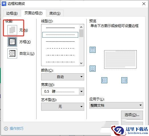 3、进入到边框和底纹窗口中,用户在设置板块中点击无选项即可解决问题。