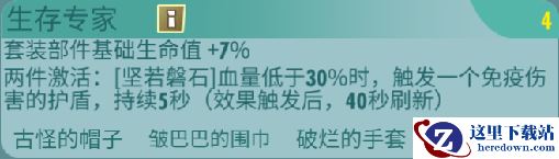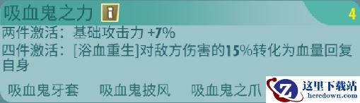 凯特毕竟是护卫,稳定起见推荐【生存专家】套装,可有效的提高生存能力,在残血的情况下得到额外的恢复时间。如果想进一步提升凯特的输出能力及吸血能力,也可佩戴【吸血鬼之力】套装。另外【最后的希望】也是不错的选择,可以提升技能恢复速度。