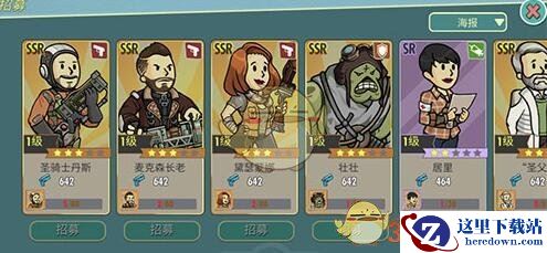 玩家需要收集一定数量的海报,就可以招募这个角色了哦。直接点击屏幕左下角的海报按钮,就可以看到自己拥有的所有英雄的海报数量,当收集完毕之后,就能得到了,目前主要分为R、SR、SSR,获取的难度也递增,而且需要的数量也更多。