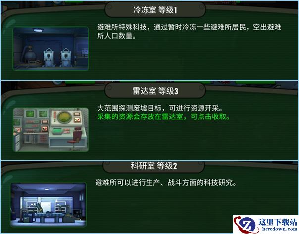 一、 “冷冻室”,如果对英雄收集欲望很强,一定要及时的建造它。它可以将暂时不需要的英雄进行“冷冻”,以帮助监督者减轻人口负担,招募用途更大的英雄进入避难所。
