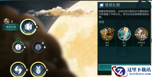 第二天:50000金币+20体力+中秋金币X3