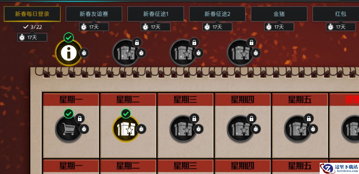 本次新春活动共分为每日登录、友谊赛、征途1、征途2、金猪以及红包,共6大章节!
