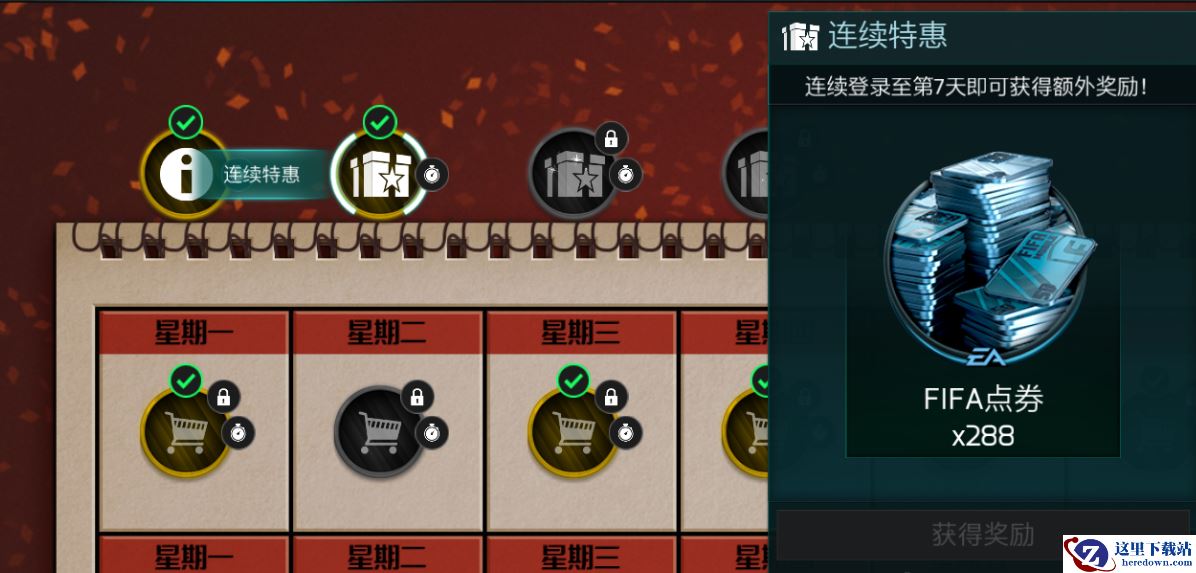在新春每日登录章节中,玩家每天登录游戏都可免费领取不同奖励,错过领取时间也不必担心,玩家可以用过宝石补领!在本章节,连续登录奖励更为丰富,新春佳节里《FIFA足球世界》项目组全体工作人员为各位玩家带来了“拜年红包”,连续7日登录将可免费领取288点券,这是游戏上线以来首次玩家可以直接领取点券的奖励!还有更多连续登录奖励等你来拿!
