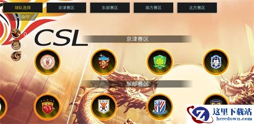 在球队选择章节中有全部16支中超球队供您选择,一共分成四大赛区:京津赛区、东部赛区、南方赛区和北方赛区。