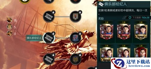 中超点数可以用来在俱乐部经纪人这里兑换中超球员,每天1次。