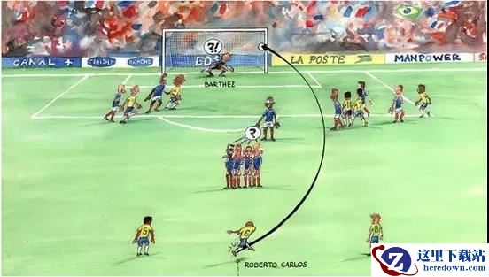 足坛经典任意球破门有很多,有小贝的圆月弯刀、有小罗的曼妙弧线、有C罗的战斧导弹等等,罗伯特卡洛斯的绝世弧线也一定是记忆中的经典。在1997年法国四国赛上,当时在距离球门40码的位置,卡洛斯创造了这道匪夷所思的弧线,看呆了现场的所有人。20年已经过去,这粒进球依然能让球迷们津津乐道,赞不绝口。