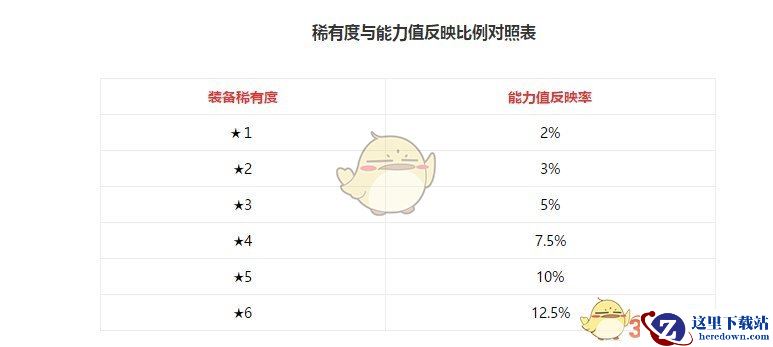在辅助装备栏位安装道具后,装备本身的能力值将会依星等不同反映一定比例至角色身上。