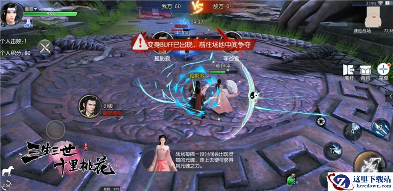 “诛仙战场”是6名玩家随机匹配的3V3玩法,匹配的玩家都是实力相近的玩家。其次,当提示变身BUFF刷新时则可以前往地图中间抢夺,实力较强大的玩家可以让实力薄弱的玩家进行变身,以提高整队的综合实力。变身九尾灵狐后,所有攻击造成的伤害均为真实伤害,因此抓住机会,一举拿下对方吧!
