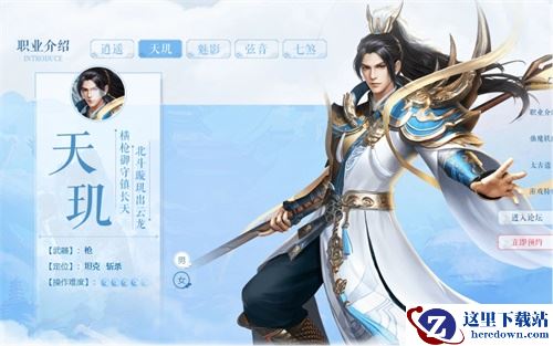 天玑职业定位为坦克、斩杀的肉盾型职业;职业的设计原型是原著中的神族,而神族中最经典的形象莫过于“二郎真君”,持有武器为长枪。