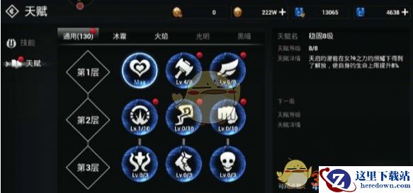 说了这么多,还没让大家看重要的呢,所有的一切都和技能天赋有关联 ,所以你的选择将决定你的天赋点,天赋点就是可以提高技能属性的,还有攻击吸血之类的,玩家可平自己喜好点,没关系点错了还可以花钱重置,所以还是慎重吧。。