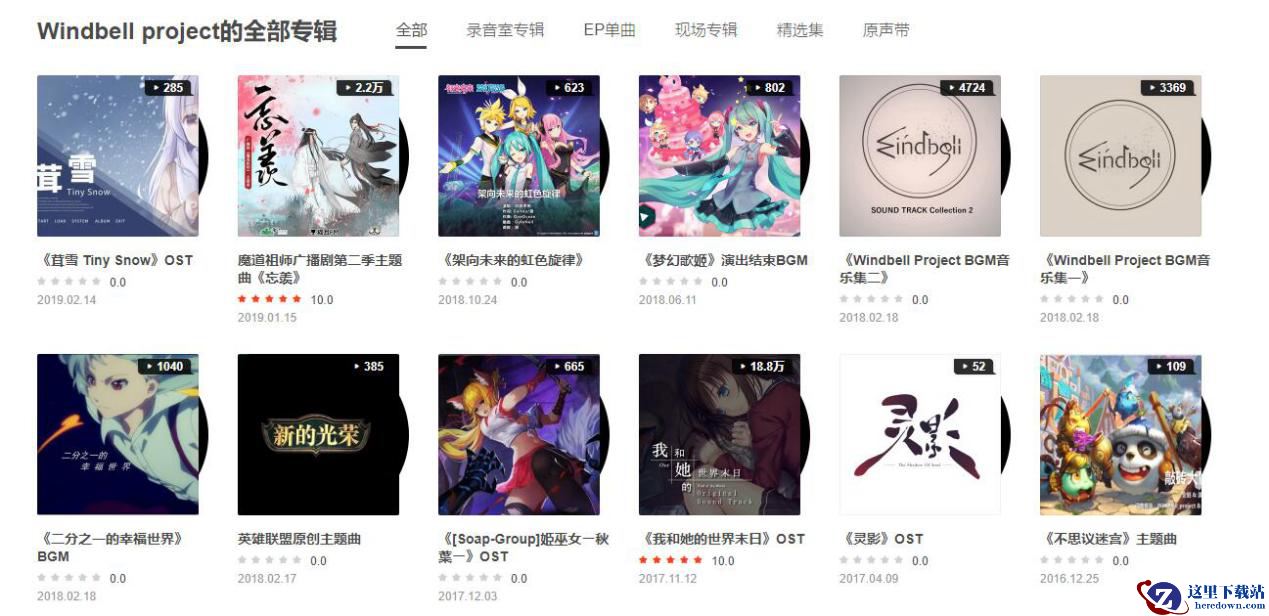 从windbell project发布在虾米音乐上的个人主页可以看到,这个制作组绝非什么初出茅庐名不见经传的新人菜鸟,不仅曾为不少业内游戏制作了游戏音乐原声,去年为《魔道祖师》广播剧制作的《忘羡》更是为不少“道友”所津津乐道。