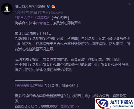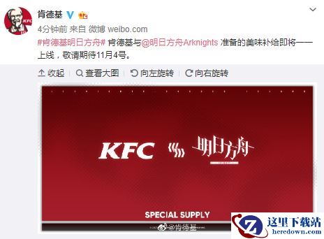 10月17日19:02更新:《明日方舟》和KFC官方确认了双方联动合作的消息,该活动预计将于11月4日正式开始。