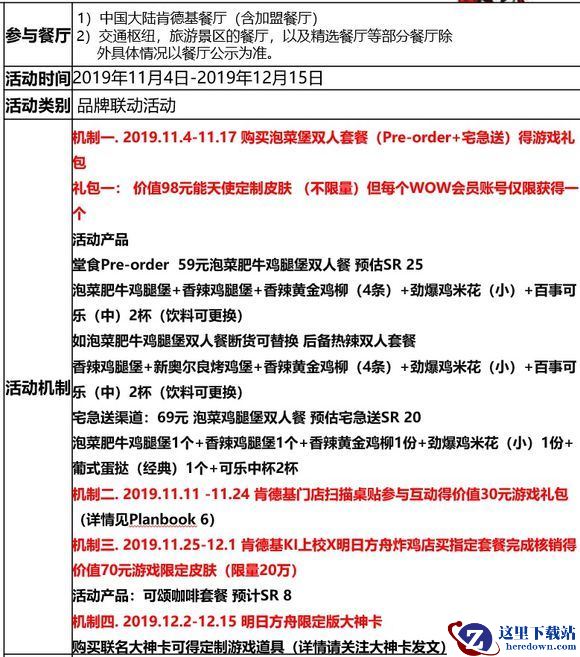 据《明日方舟》贴吧爆料,著名快餐品牌肯德基(KFC)将于大热手游《明日方舟》进行联动,购买指定套餐即可获得游戏中价值98元的皮肤,但是目前此事没有得到官方的确认。
