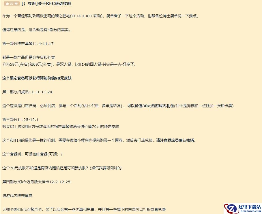 据NGA大神透露,这次联动活动在KFC购买一个限定套餐可以获得阿能价值98元皮肤,同时到点扫码还可以获得价值30元的游戏内礼包。(攻略帖子点击查看☜)