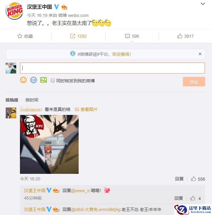 于此同时,隔壁老王“汉堡王”也发微博表示:憋说了。。老王实在是太南了